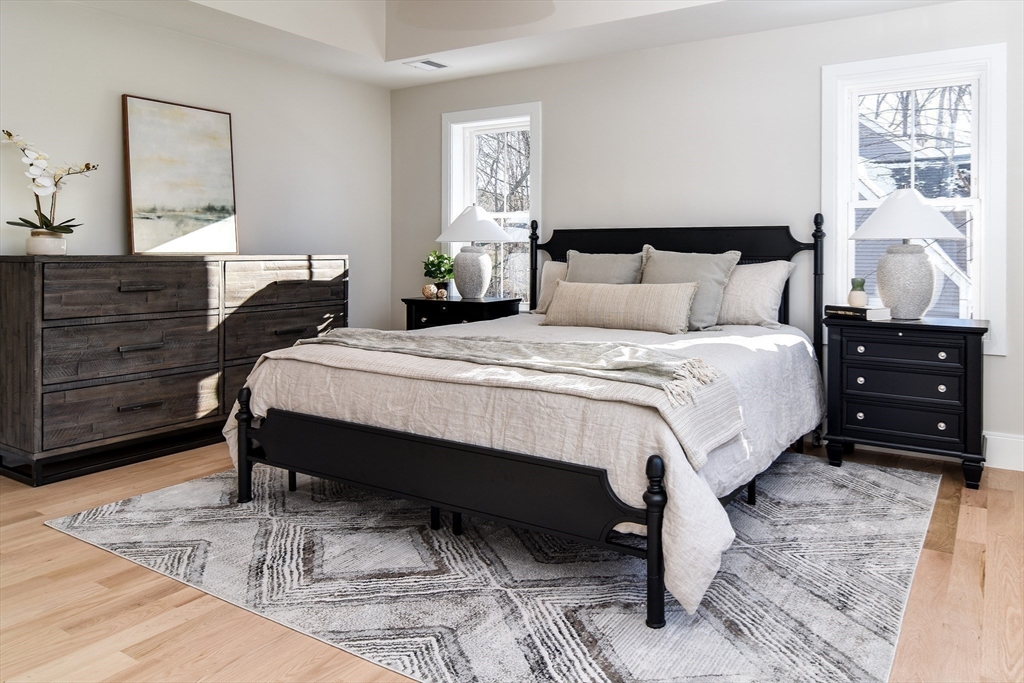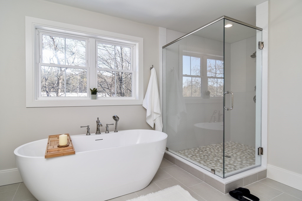 Welcome to 79 Speen Street, a stunning new construction home in a convenient Natick location. This spacious home offers a transitional layout with rich details, a high-end kitchen, a beautiful eat-at island, a butler's pantry, dining room, fireplaced family room, mudroom with built-ins, stylish powder room, and a private office with direct access to the wraparound porch. Upstairs features a luxurious primary suite with an expansive walk-in closet and spa-like bath, plus three additional bedrooms, a full bath, and laundry. Hardwood floors throughout most of the home highlight the quality craftsmanship and thoughtful design. Full basement for storage or future expansion. A generous yard could allow for an ADU or home business. Schedule a viewing through the link below.